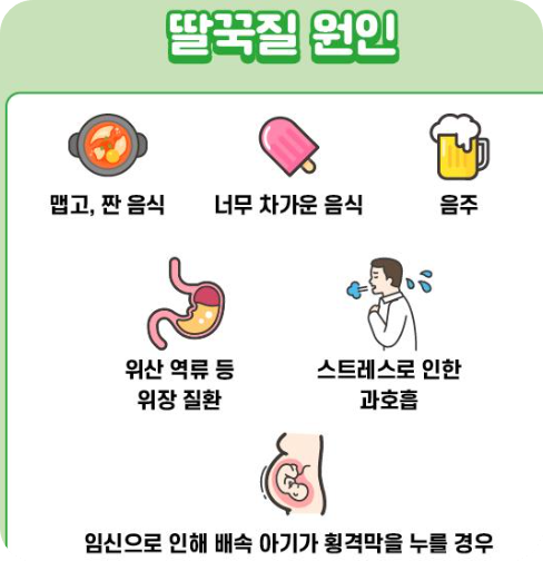 딸꾹질을 미리 예방하는 것이 가장 좋은 방법이에요. 딸꾹질은 주로 뜨겁거나 자극적인 음식, 과식, 급하게 먹기, 탄산음료, 과음, 갑작스러운 온도 변화 등에 의해 발생해요.