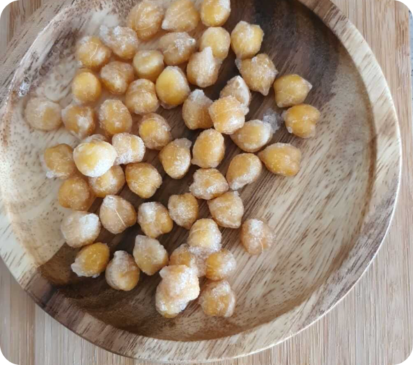 병아리콩의 혈당지수는 28로 매우 낮은 편에 속해서 혈당 급증을 막는 효과가 뛰어나요. 영국 킹스칼리지런던대 연구에 따르면 병아리콩 가루가 들어간 빵을 먹은 사람들의 혈당 반응이 일반 빵을 먹은 사람들보다 40%나 낮았다고 해요.