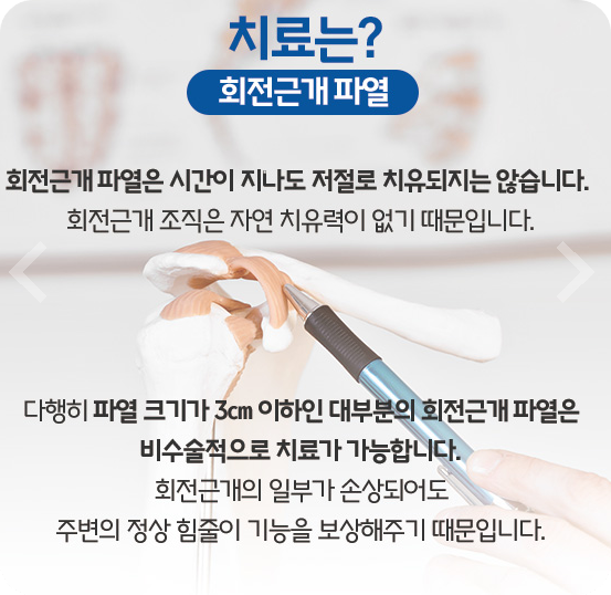 평소 무심코 하던 동작이 힘들고 제한된다면, 단순 근육 뭉침보다는 회전근개 손상을 의심해 보셔야 합니다.