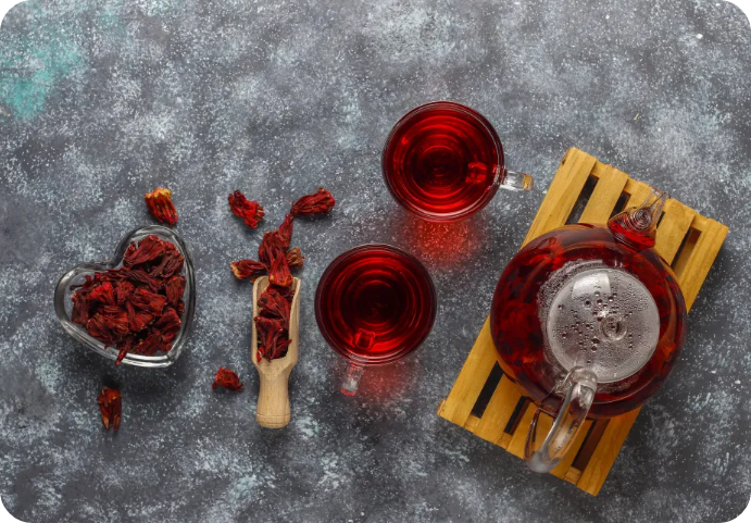 히비스커스차는 새콤한 맛이 특징인 차예요. 특히 혈압이 높은 당뇨 환자분들에게 도움이 되는데, 매일 2잔 정도의 히비스커스 차를 마시면 당뇨병 환자의 최고 혈압 수치가 낮아졌다는 연구 결과가 있어요.
