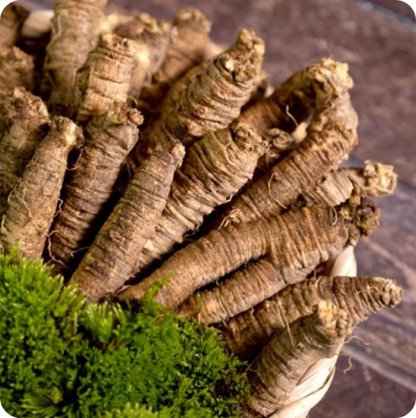 더덕은 산삼과 비슷한 모양을 가진 뿌리 식물로 기관지 건강에 매우 좋은 약재예요. 더덕에 풍부하게 함유된 사포닌 성분이 가래와 기침을 개선하고 폐 기능을 강화시켜주는 역할을 합니다.