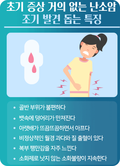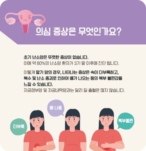 난소암 초기증상으로 나타나는 하복부 통증은 생리통과 비슷해서 많이 놓치는 증상이에요. "생리 전이라 그런가?"라고 생각하시는 분들이 많은데, 생리와 관계없이 지속적으로 아프거나 통증의 양상이 평소와 다르다면 주의해보세요.