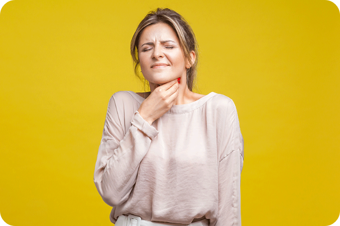 갑상선암이 진행되면서 목 앞쪽 종양이 커지면 음식을 삼키기 어려운 증상이 생길 수 있습니다. 음식을 삼킬 때 이물감이 느껴지거나 목에 무언가 걸린 듯 답답한 느낌이 드는 것이 특징이에요.