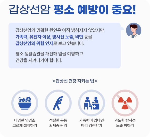 균형 잡힌 식사와 적절한 운동은 면역력을 높이고 건강을 유지하는 데 큰 도움이 됩니다. 마지막으로, 흡연이나 지나친 음주 같은 갑상선 건강에 해로운 습관은 줄이는 게 바람직해요.
