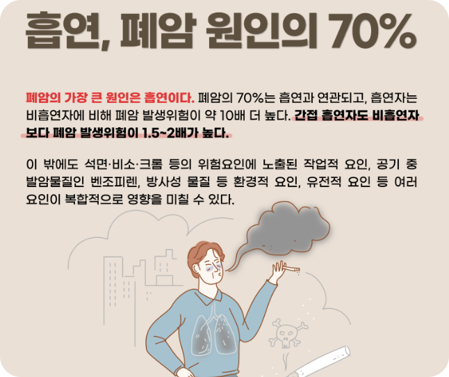 그리고 54~74세 흡연자라면 국가암검진으로 2년마다 폐암 검진을 받을 수 있으니 꼭 받아보세요!