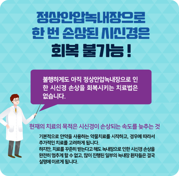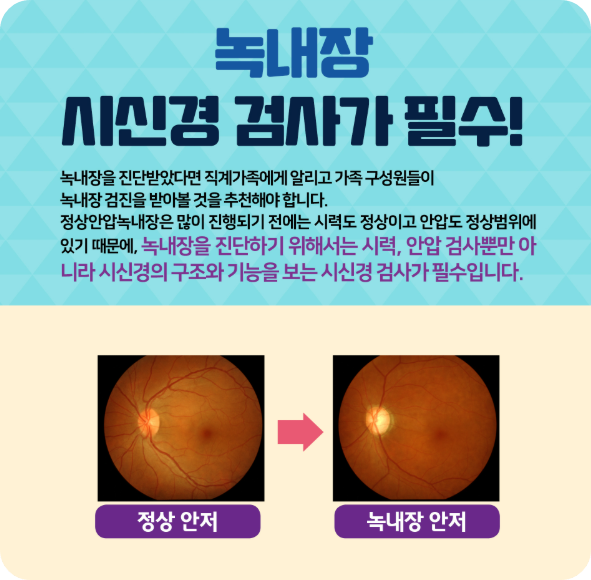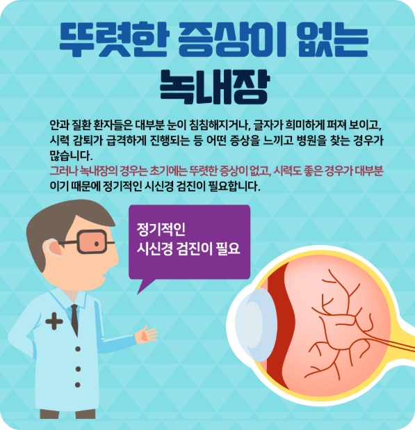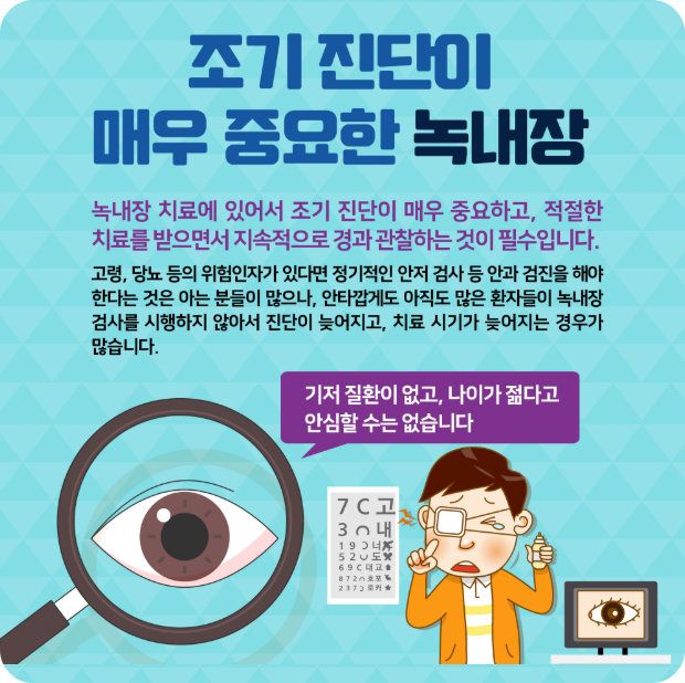 무엇보다 만 40세 이상이 되면 매년 안과에서 안압 검사와 안저 검사를 받아 조기에 발견하고 관리하는 것이 가장 중요해요.