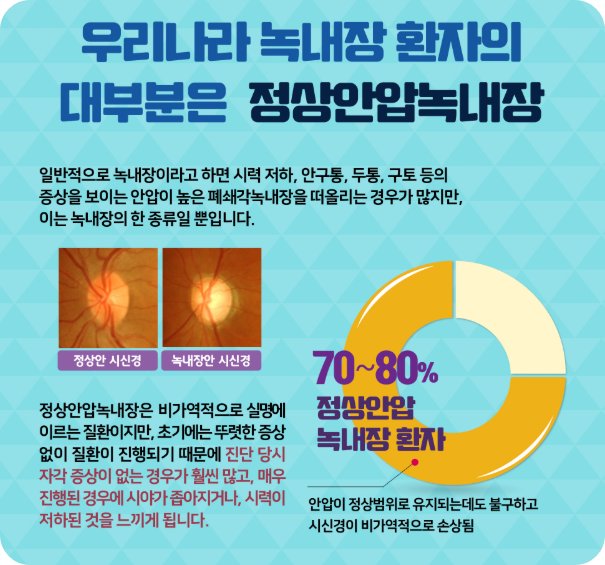 녹내장 초기증상에 대해 자세하게 알아보겠습니다. 녹내장은 안압이 상승하거나 시신경으로 가는 혈류에 문제가 생기면서 시신경이 손상되는 질환인데요, 초기에는 거의 자각증상이 없어서 발견이 늦어지는 경우가 많답니다.