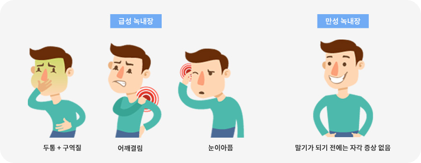 급성 녹내장의 경우 안압이 급격히 상승하면서 메스꺼움과 구토 증상이 함께 나타날 수 있어요. 응급실을 방문할 정도로 심한 구토 증상이 생기기도 하는데, 이는 안압의 급격한 상승으로 인한 것이랍니다.