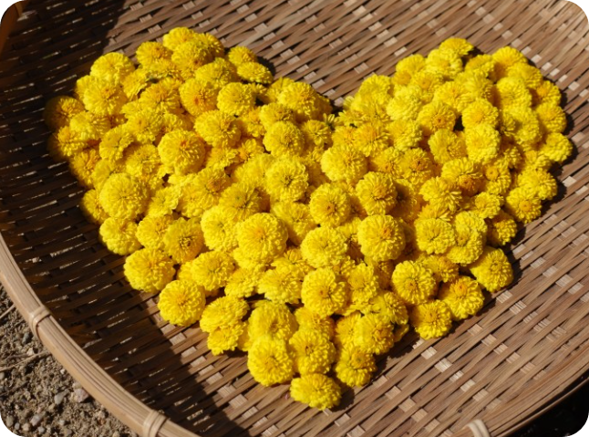 국화차는 불로장수 차라고 불릴 만큼 건강에 좋다고 알려진 차인데요. 국화에 함유된 콜린 성분이 아세틸콜린으로 변화하면서 신호전달을 원활하게 하여 도파민과 세로토닌 생성에 도움을 준답니다.