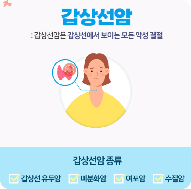 규칙적인 운동을 통해 몸의 대사를 촉진시키고, 스트레스를 줄여주는 것도 꼭 필요한 부분입니다. 또 갑상선암은 정기적인 검진을 통해 조기 발견하는 것이 무엇보다 중요한데요, 조기에 발견하면 치료 성과가 뛰어나기 때문에 건강검진을 꾸준히 챙기시는 게 좋아요.