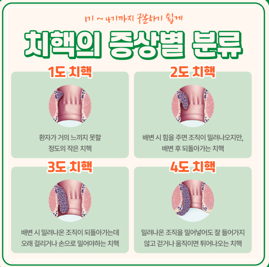 통증이 없는 내치핵 1단계라고 생각했는데 알고 보니 직장점막탈출증이거나 직장탈인 경우도 있으니 주의가 필요해요. 이를 계속 방치하면 괄약근이 점차 약화되어 변실금 증세가 올 수 있으니 초기에 병원을 방문하시는 것이 중요하답니다.