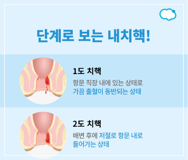 이러한 통증은 며칠간 지속되다가 서서히 차도를 보이게 되는데요, 반면 내치핵의 경우에는 대부분 통증이 동반되지 않는 것이 특징이랍니다. 하지만 합병증이 생기거나 혈전이 생기면 내치핵도 통증을 유발할 수 있어요.