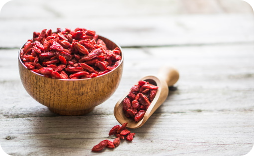 구기자 다당체와 폴리페놀 성분이 피부 노화를 늦추고 피부 장벽을 강화시켜 주어서 화장품 원료로도 많이 활용되고 있답니다. 안에서부터 피부를 개선해 주는 천연 미용 식품이에요.