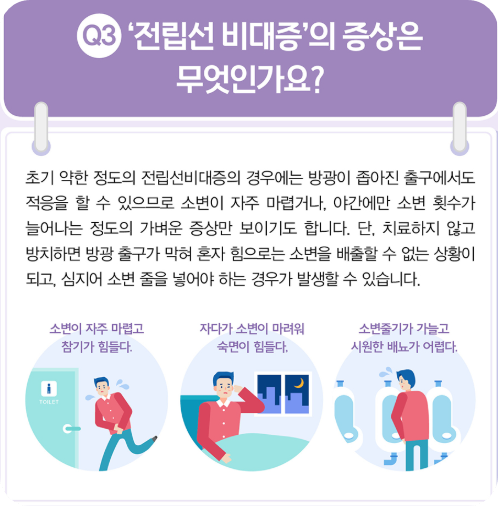 방광 근육이 힘을 내도 압박된 요도로 인해 배뇨가 원활하지 않아서 생기는 현상이고, 대중교통이나 공공장소에서는 굉장히 불편할 수 있습니다.