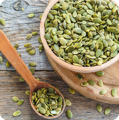작은 크기지만 영양소는 가득 담긴 호박씨는 마그네슘이 상당히 많이 들어 있습니다. 호박씨 속 리그난 성분은 항산화 작용을 도와 세포 건강을 지켜주고 염증 완화에도 도움을 줍니다.