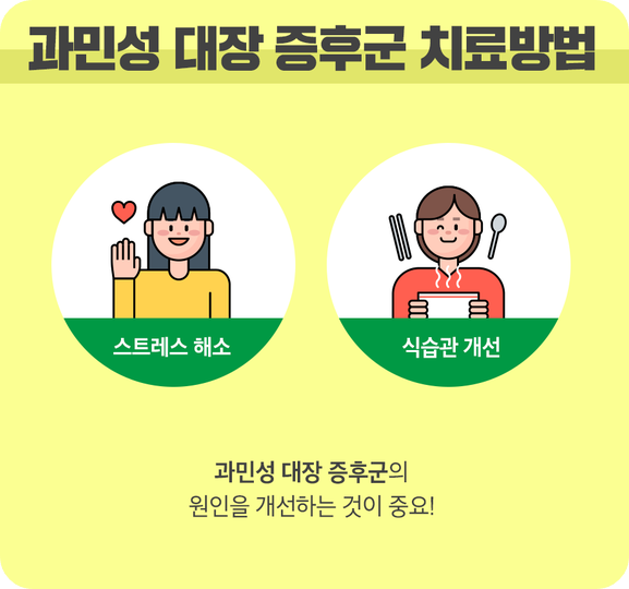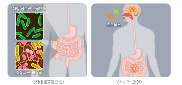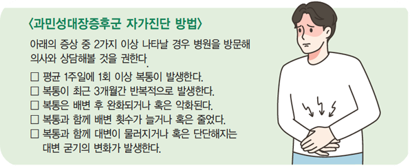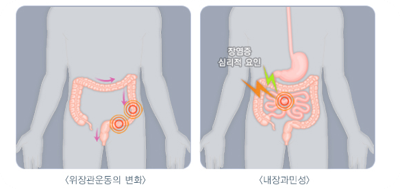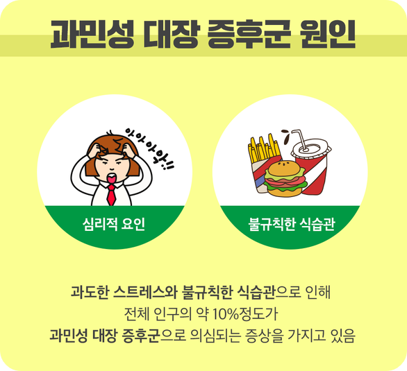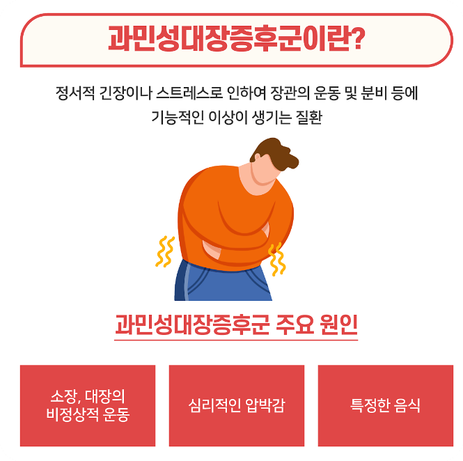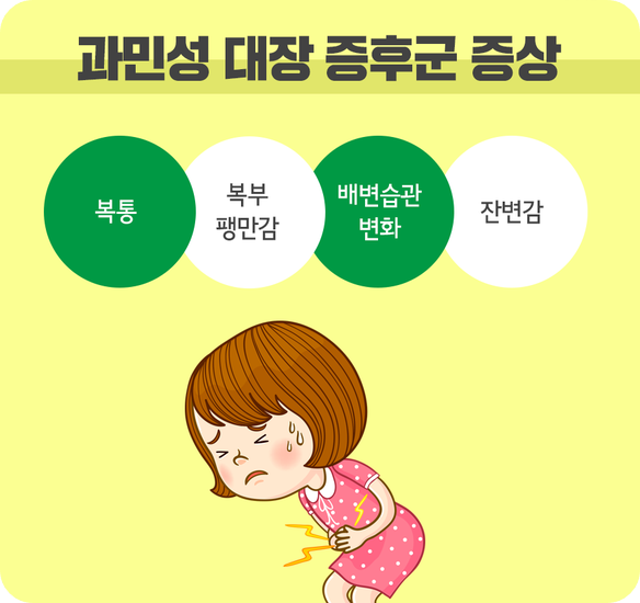 대장이 외부 자극이나 스트레스에 과민하게 반응해 배변 습관에 변화를 일으키고 복통, 불편감을 유발하는 것이 특징이지요.