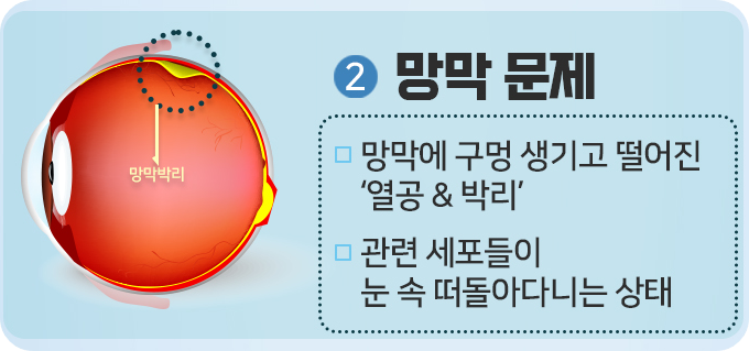 단순한 피로 증상으로 넘기기 쉽지만, 망막 박리의 중요한 전조 증상일 수 있으니 주의 깊게 관찰해 주세요.