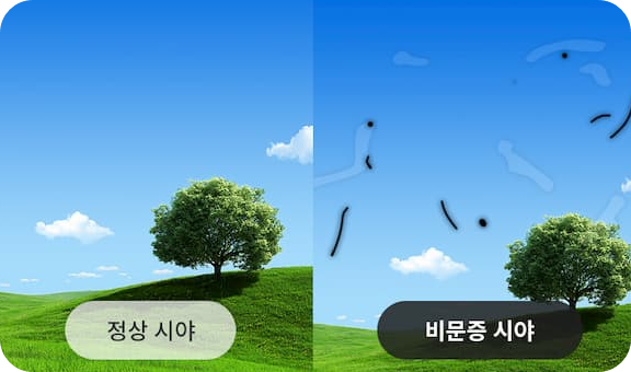 망막 박리의 가장 흔한 초기 증상 중 하나가 바로 비문증이에요. 눈앞에 작고 까만 점이나 벌레, 거미줄, 투명한 실 같은 것들이 떠다니는 것처럼 보이는 증상을 말하는데요. 이는 눈 속 유리체에 부유물질이 생기면서 나타나는 현상이랍니다.