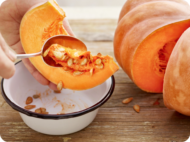 단호박에 함유된 베타카로틴 성분은 면역력 강화에 효과적이며 체내 유해균의 번식을 막아 위염을 예방하고 점막을 보호해주는 역할을 해요.