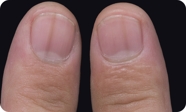 처음에는 얇은 갈색 줄로 시작했다가 점점 넓어지고 색이 진해지면서 검게 변하는 경우가 많아요. 톱을 다친 적도 없는데 검은 줄이 생기거나, 기존의 줄이 점점 굵어진다면 의심해봐야 해요.