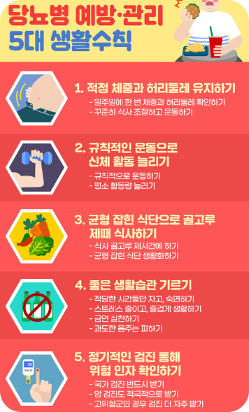 또한 상처가 치유되는 데 중요한 역할을 하는 혈관 내피세포 기능에 장애를 일으키고 산화 스트레스를 높여 피부 장벽의 파괴를 촉진시켜 2차 세균 감염에 취약하게 된답니다. 작은 상처가 2주 이상 낫지 않거나 자꾸 덧나는 경우가 반복된다면 당뇨를 의심해봐야 해요.