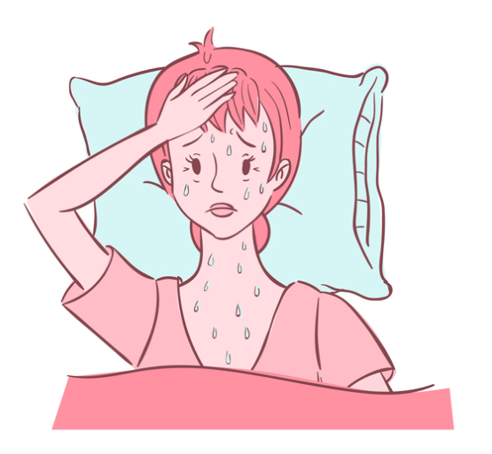 특히 손과 발바닥에서 땀이 많이 나는 경향이 있어요. 피부의 혈류 순환이 증가하면서 피부가 따뜻하고 습한 상태를 유지하게 되고요. 겨울에도 반팔을 입거나, 밤에 자다가 땀 때문에 여러 번 깨는 경우도 있답니다.