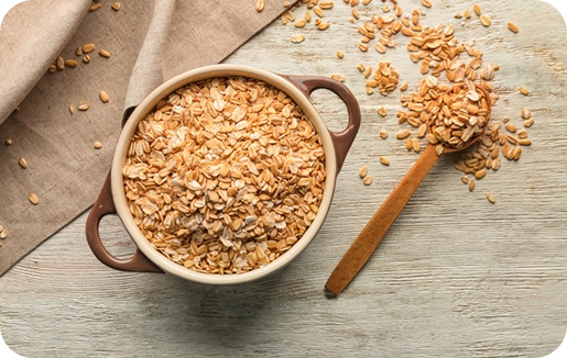 오트밀의 복합 탄수화물은 천천히 소화되어서 위장에 무리를 주지 않고, 혈당도 안정적으로 유지시켜줘요.