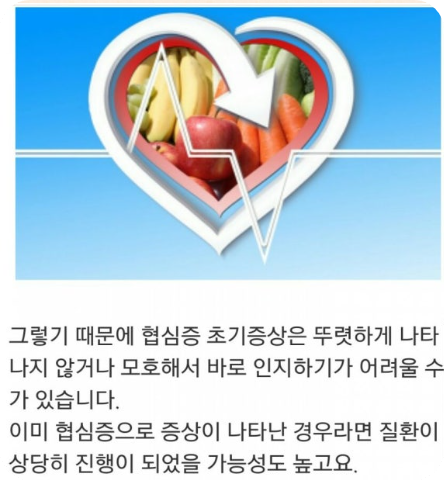 하지만 이런 위장 증상이 신체 활동과 연관되어 나타나거나, 휴식을 취하면 완화되는 패턴을 보인다면 협심증을 의심해보셔야 합니다.