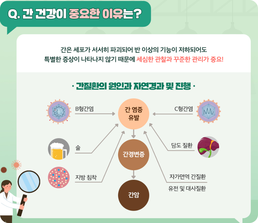 간 기능 이상이 의심되면 즉시 전문의 진료를 받아 상태에 맞는 치료계획을 세우시고, 가족력이 있다면 더욱 주의 깊게 관찰해 주세요.