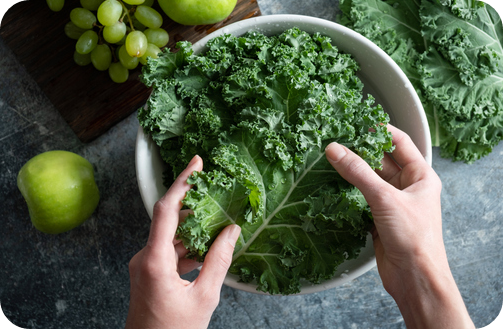 케일은 슈퍼푸드로 불리는 녹색 잎채소의 대표주자예요. 케일에는 항염증 효과가 큰 비타민K가 풍부하게 들어있고, 케일 한 컵만으로도 오메가-3 지방산 하루 권장량의 10%를 섭취할 수 있어요.
